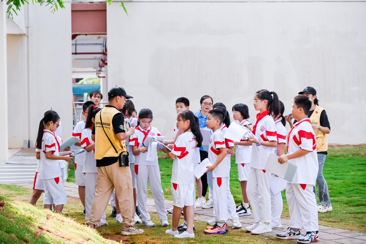 活动现场,三亚市林业科学研究院的专家为人大附中的同学们带来了一堂生动的古树保护科普研学课。在专家指导下,学习如何观察植物形态、辨识树叶形状与树皮特征,并亲手参与古树树龄的测量实践。