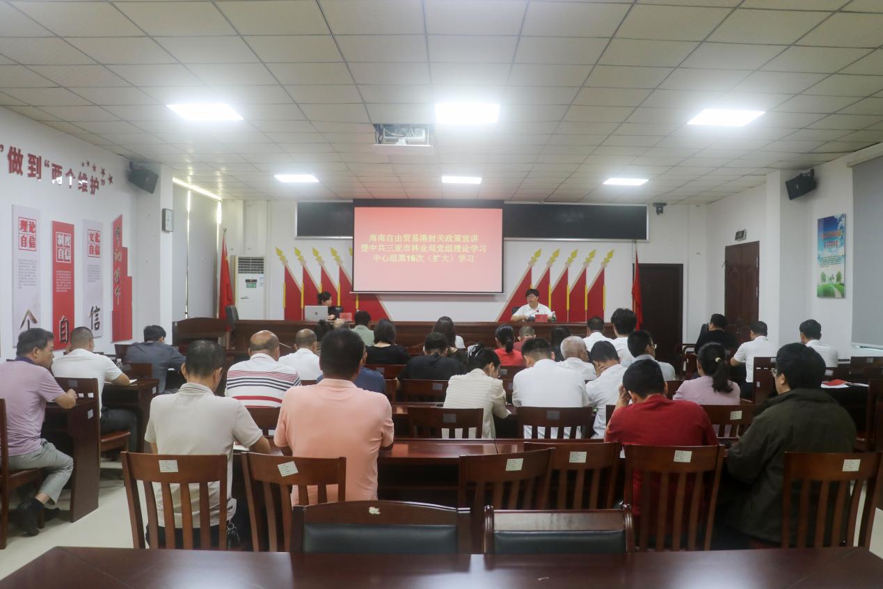 为引导全局党员群众深刻领会党中央及习近平总书记对海南自贸港建设的关心关怀,进一步凝聚社会各界对自贸港建设的信心与决心,为封关运作平稳有序、首战必胜营造浓厚氛围,9月25日下午,三亚市林业局开展以“聚焦自贸港封关政策,共筑林业发展新篇”为主题的海南自由贸易港封关政策宣讲暨中共三亚市林业局党组理论学习中心组第16次(扩大)学习会。活动由市林业局党组书记、副局长曲环主持。局机关、市野生动植物保护中心全体工作人员,春光社区居委会工作人员,临春岭森林公园管理处工作人员及退休干部职工代表共40余人参加。