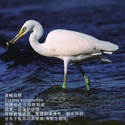 在三亚拍摄的国家一级保护动物——黄嘴白鹭。三亚市野生动植物保护中心供图