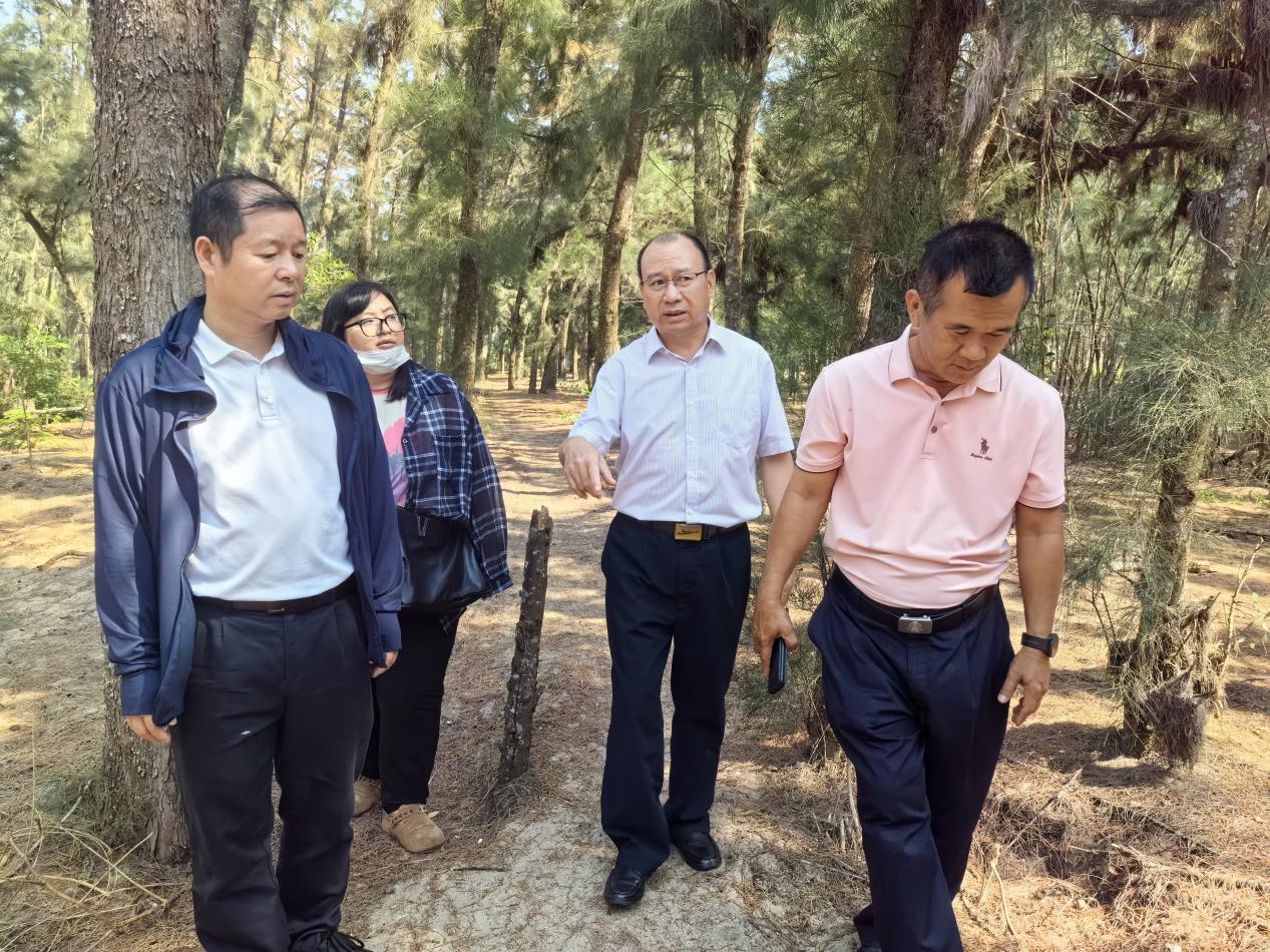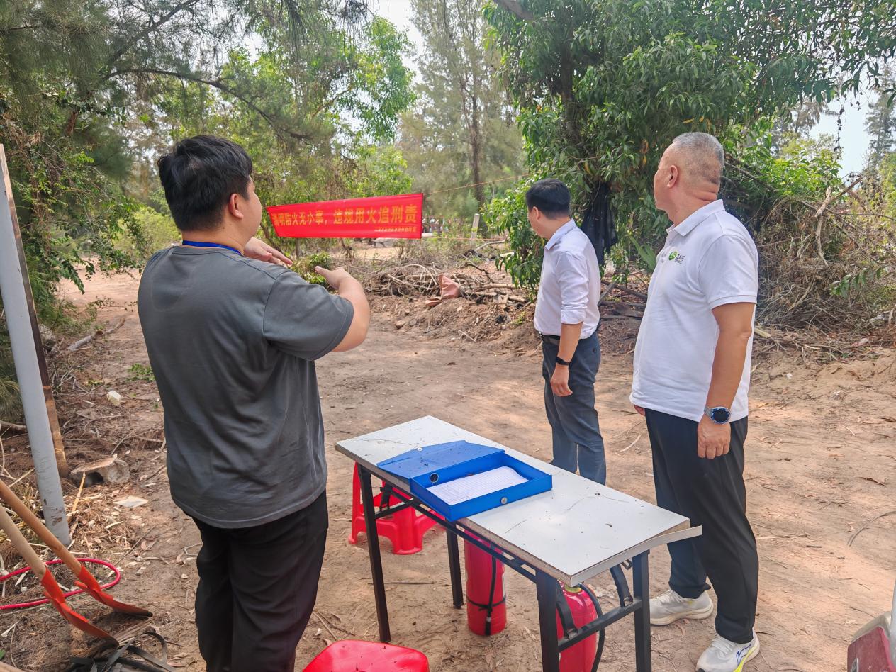市林业局四级调研员杨震带领第三督查组深入崖州区海防林,重点排查野外火源管控、防火码设置及可燃物清理等情况,要求加大巡查密度,对发现的隐患立即整改。